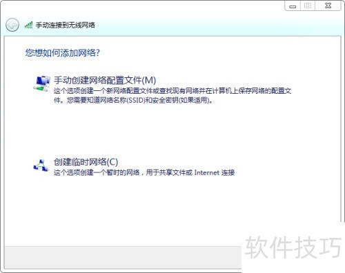 3、 添加后将弹出手动创建网络配置文件窗口,选择该选项进行操作。