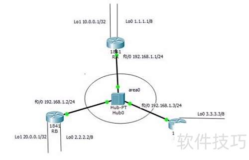 8、 配置路由器RA的快速以太网接口f0/0及环回接口L0、L1,并启用OSPF路由协议。