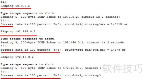 21、 以路由器A为例,执行show ip ospf neighbor命令,检查OSPF邻居状态,验证路由表项的正确性与邻居关系建立情况。