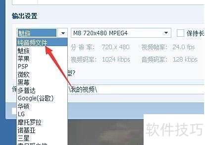 3、 添加完毕后,在输出设置里选纯音频格式。