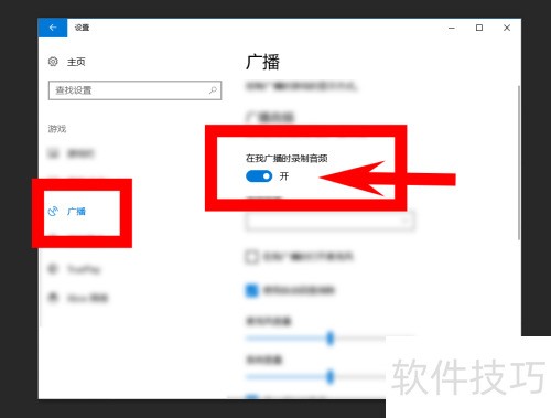 3、 在游戏广播设置中开启广播时录制音频功能即可自动录音。