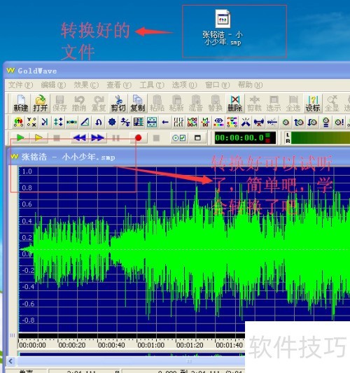 8、 所示,已成功转换为smp文件,并在GoldWave中顺利播放。转换过程非常简便,其他格式同样支持,操作轻松快捷,不妨亲自尝试一下,体验流畅的转换效果。
