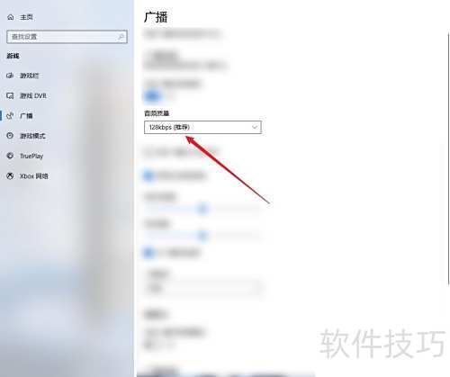 3、 在广播设置界面,点击音频质量的选项框,选择适合的音频质量即可完成设置。