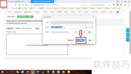 7、 选择所需音频格式,点击转换后选择下载,即可保存音频文件到本地设备。