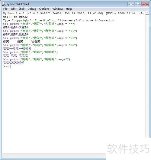 14、 执行这六条语句可看出,sep用于设定参数间的分隔符号。