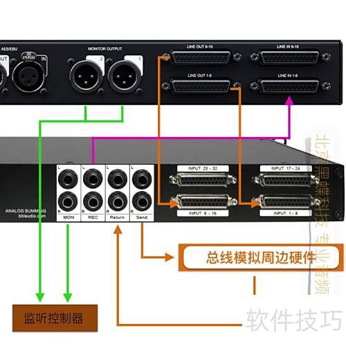 3、 Apollo X16的监听输出与总线输出均可接入监听控制器,实现灵活的音量控制与信号分配。总线输出的录音信号可接入Apollo X16的线路输入,用于回录处理后的立体声信号。发送与返回接口可用于连接外部硬件处理器,例如母带压缩器、均衡器或限制器,便于在混音或母带阶段加入模拟设备的音色处理,提升音频质感与动态表现。