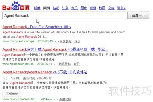 1、 在百度搜索Agent Ransack,点击首个链接,进入页面后根据提示完成下载与安装即可。