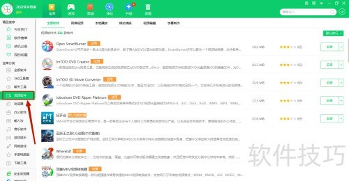 2、 360软件管家中,左侧宝库分类下的视频软件专区