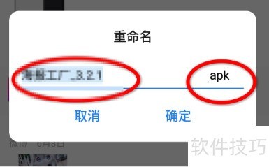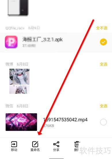 6、 长按显示详细选项,点击重命名并选择所需后缀。