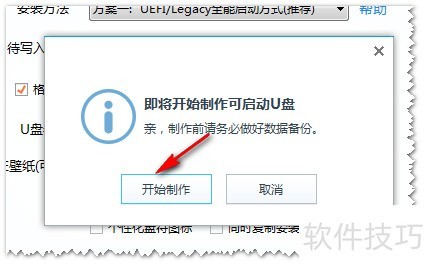 3、 进入第二页面后,确认U盘信息,勾选包含DOS工具箱,点击立即安装进U盘,随后在提示框中选择开始制作即可。