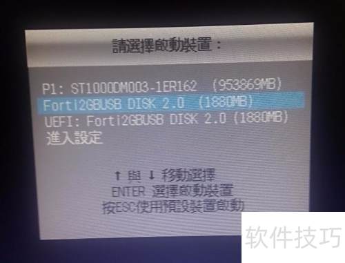 5、 关机后插入U盘,开机按F12进入启动菜单,选择USB设备启动,检测U盘是否制作成功。