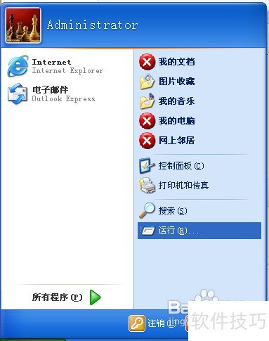 1、 首先点击开始菜单,接着选择运行功能,操作步骤所示。