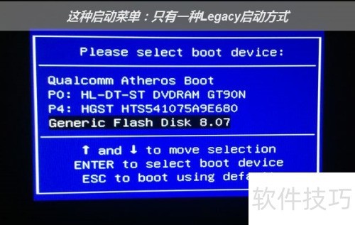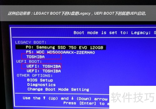 2、 识别U盘并选择UEFI或Legacy启动模式