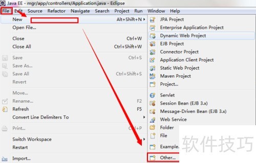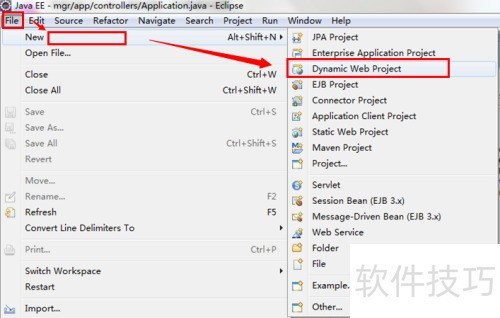 1、 首先启动Eclipse软件,进入后依次点击菜单栏中的→→,即可创建一个新的动态Web项目,表明该项目类型为Web应用,便于后续开发与部署。
