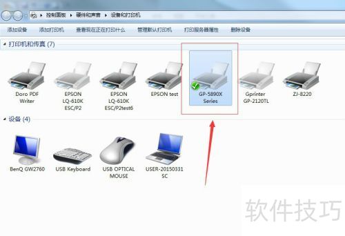 2、 点击电脑左下角按钮,进入界面,找到GP-5890X Series打印机,右键单击该设备,选择即可完成设置。