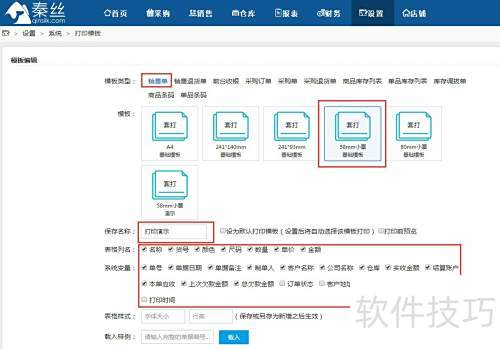 3、 进入秦丝进销存系统,依次点击设置与打印模板页面。