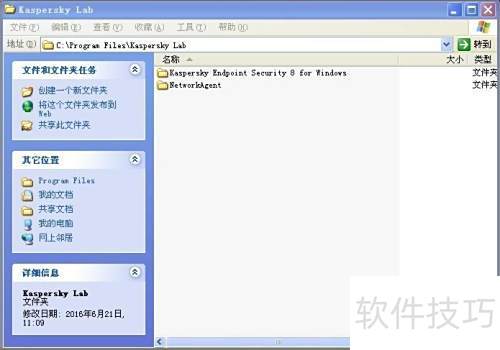 3、 进入C盘的Program Files文件夹,找到Kaspersky Lab目录下的NetworkAgent文件夹,其中包含一个名为klnagchk.exe的可执行程序。