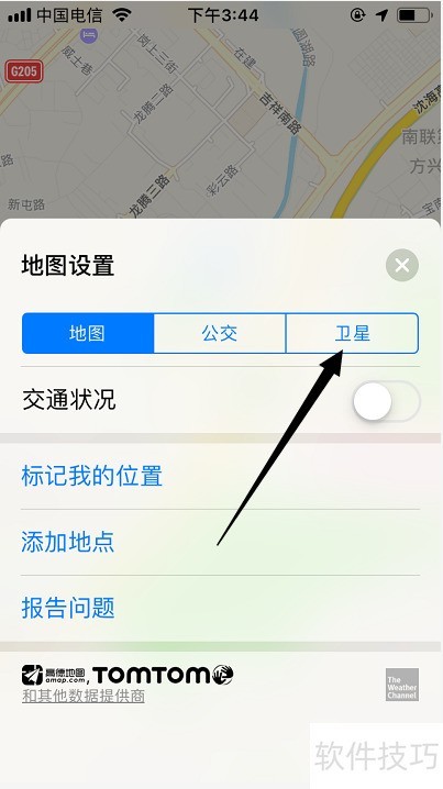 4、 选定卫星后返回地图主界面,即可切换至3D模式查看。