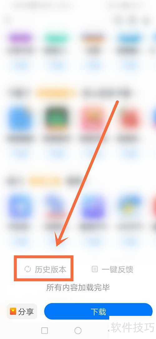 2、 下滑至应用详情页底部,点击历史版本即可查看,操作所示。