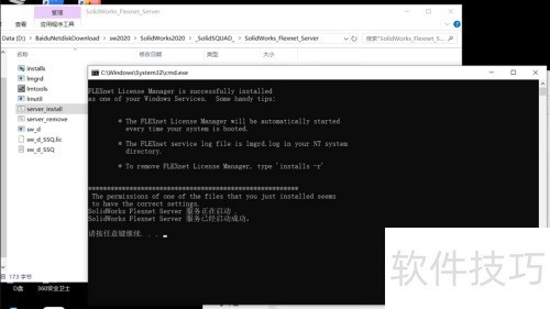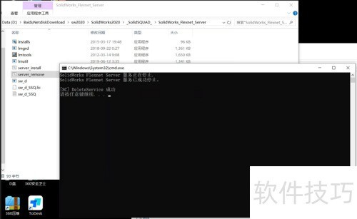 2、 第二步,进入软件安装包内解压后的SolidSQUAD文件夹,找到其中的solidWorks-Flexnet-Server目录,右键以管理员身份运行server-remove.bat文件,执行卸载操作,待卸载完成后按任意键退出程序。