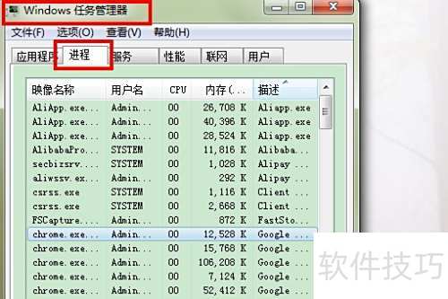 2、 点击该选项可打开任务管理器,选择第二项进程。