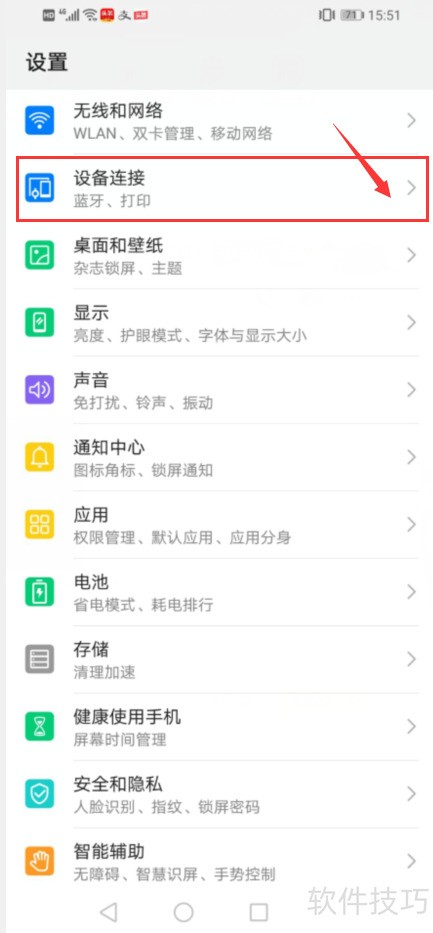 4、 进入手机设置,开启设备连接功能。