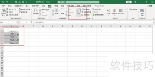 1、 打开表格,选中日期,点击数据菜单中的分列按钮。