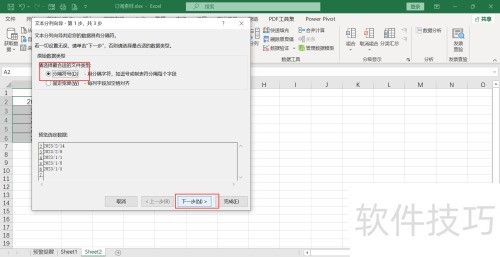 2、 启动分列向导,选择分隔符分隔选项。