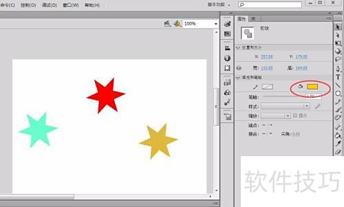 8、 修改星星的填充颜色,所示: