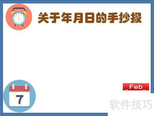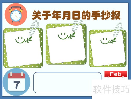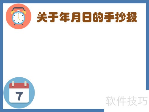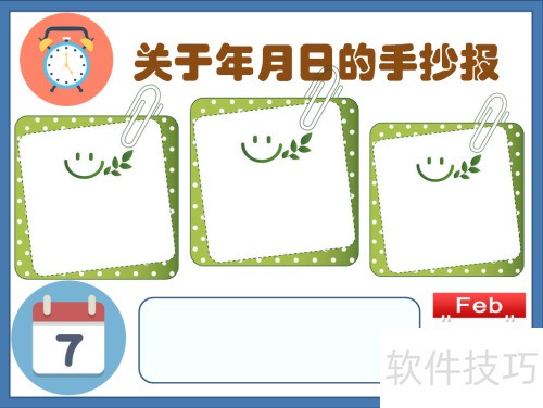5、 在空白处画四个大小不一的文本框,填写关于年月日的手抄报内容。