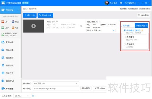 本期分享如何使用迅捷视频转换器将FLV格式转换为MP4格式。