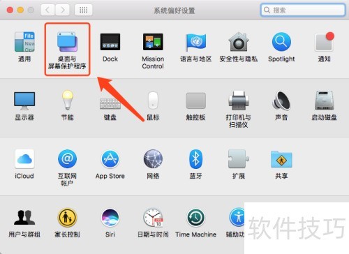 7、 我们可以在系统偏好设置中直接找到桌面与屏幕保护程序图标,对桌面背景进行更改。