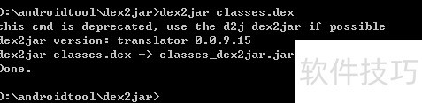5、 首先,获取 APK 的代码文件。使用压缩工具(例如好压)打开需要反编译的 APK 文件,从中提取出 classes.dex 文件。接着,将该文件复制到 dex2jar 所在的目录下(即第二个工具的解压文件夹)。通过命令行进入 dex2jar 文件夹,并执行 dex2jar classes.dex 命令进行转换。