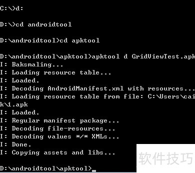 4、 输入命令 apktool d 加上带有后缀的 APK 文件名,可以提取应用的资源文件,所有资源内容都会显示在这里。