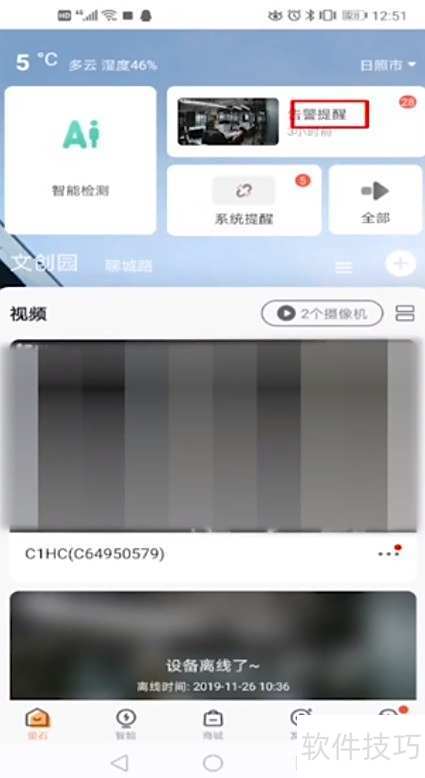 2、 点击手机右上角告警提示,选择需删除的监控视频。
