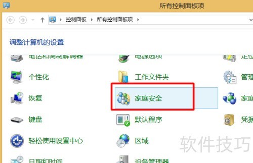 2、 打开控制面板后,进入家庭安全选项,可在此设定详细的管控规则。