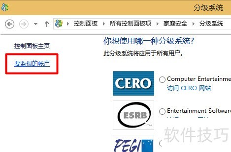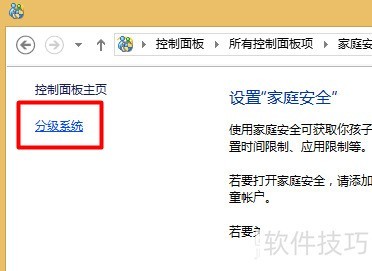3、 在家庭安全窗口中,单击左侧的分级系统按钮以进入设置界面。