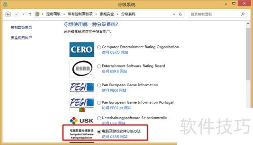 4、 建议家长根据实际需求,选择适合的分级系统,推荐选用电脑及游戏软件分级办法。