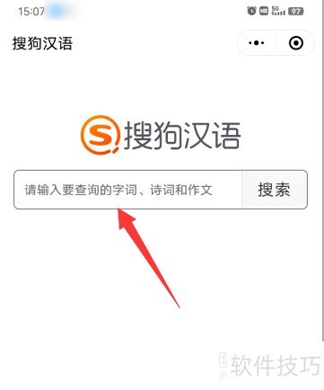 1、 打开微信,进入搜狗汉语小程序,点击查询栏。