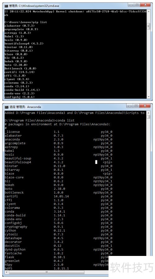 4、 至此,IPython已成功安装,整个过程简单又快捷。接下来,你可以通过在命令行中输入`pip list`,或者在Anaconda中运行`conda list`来查看已安装的库,操作十分方便。