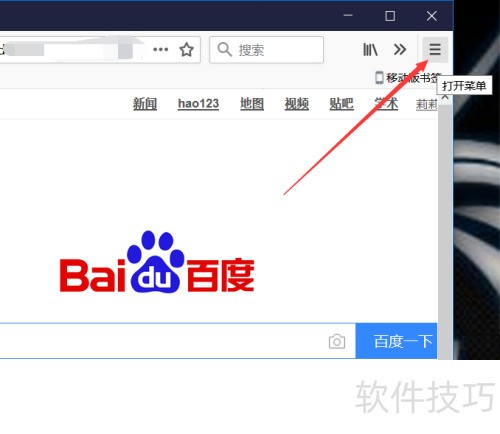1、 打开火狐浏览器后,点击右上角的三条横线图标,所示。