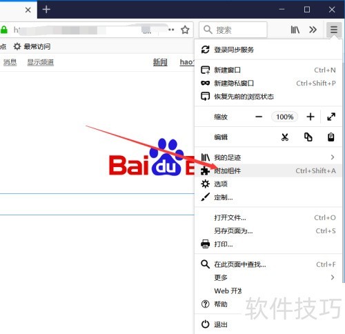 3、 打开火狐浏览器附加组件管理器...