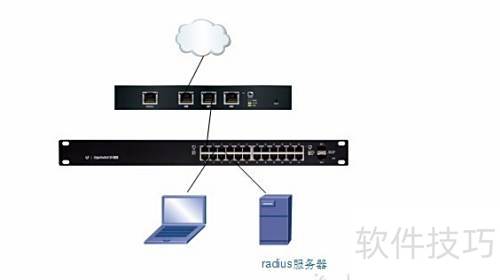 1、 网络拓扑结构中包含一台Windows Server 2008系统主机,作为RADIUS认证服务器部署,主要为ES24交换设备的Telnet远程登录操作提供身份验证服务。