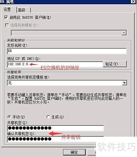 4、 添加一个Radius客户端(此处客户端指ES交换机)