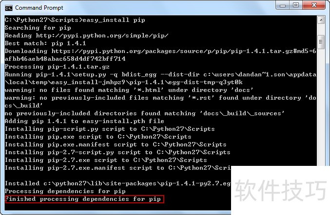 12、 然后输入命令:easy_install pip,等待安装完成即可。