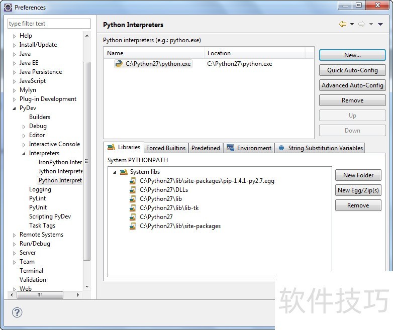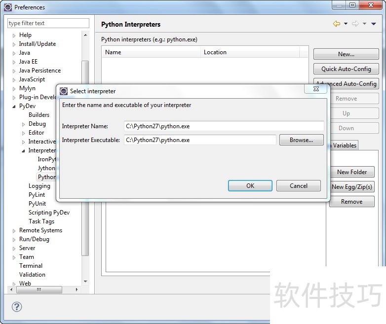 27、 安装PyDev后,需设置Python或Jython解释器,操作简单。