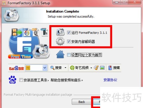 3、 安装进行中,请等待完成,仅保留红色区域内的勾选,点击完成按钮。