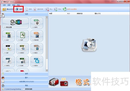 4、 打开格式工厂后,首先进行相关设置,例如指定转换路径,这样便于查找转换后的文件。这里我们主要设置输出路径,其他选项可根据个人需要调整。
