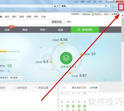 1、 打开IE浏览器后,右上角有一个齿轮图标,点击它即可。