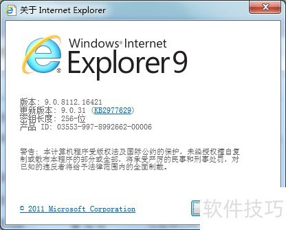 4、 当前IE版本会在出现的框中显示。